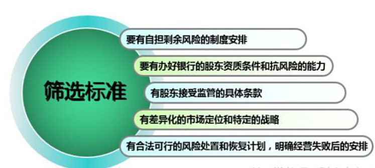 3月11日,銀監會公布了首批民營銀行試點名單。經過發起主體之間多輪溝通和資源協商,近期三家試點銀行籌建小組確定了銀行籌建方案,7月中下旬向銀監會提交了正式的籌建申請。