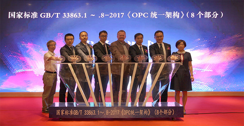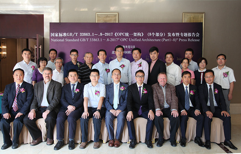 2017年9月5日,全國工業過程測量控制和自動化標準化技術委員會(SAC/TC124)秘書處,聯合機械工業儀器儀表綜合技術經濟研究所(以下簡稱儀綜所)、OPC基金會在北京成功舉辦了“GB/T 33863.1~.8-2017《OPC統一架構》發布報告會暨OPC UA認證測試實驗室授權儀式”。國家標準化管理委員會(以下簡稱國標委)工業二部田昭瑩副主任、徐全平處長,工業和信息化部(以下簡稱工信部)裝備工業司董挺博士,OPC基金會主席Thomas J.Burke先生,SAC/TC124副主任委員、儀綜所歐陽勁松所長,OPC中國主席張天貴先生出席并講話。國際電工委員會IEC/TC65/WG16數字工廠國際標準工作組召集人Thomas Hadlich先生,OPC UA標準起草工作組成員,以及支持OPC UA互聯的產品供應商和用戶企業、工業通信技術組織、科研院所等代表及15家專業媒體記者共計120余人參會。