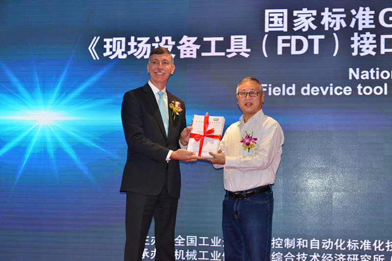 之后,中國儀器儀表行業協會李躍光副理事長對FDT技術在系統集成和互聯互通、服務于智能制造發揮的技術優勢給予了充分地肯定,對FDT專業委員會表達了殷切的希望:借助FDT標準的發布,促使國內企業快速融入智能制造潮流;儀綜所梅恪副所長代表FDT專業委員會主任委員、儀綜所歐陽勁松所長致辭,表示新版設備集成技術FDT國家標準的發布對進一步滿足企業對智能制造的新需求創造了條件,規范了現場設備和主機系統之間的通信和組態接口,是智能制造核心集成的重要解決方案;SAC/TC124秘書長、儀綜所副總工程師王春喜博士代表標準起草工作組介紹了FDT接口規范(6個部分)的國家標準的制定、審查過程和工作情況。隨后,大會向該系列國家標準起草工作組的專家代表頒發了紀念證書。