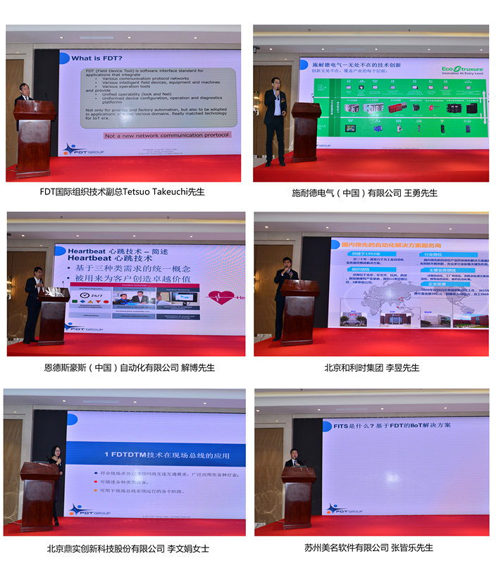 技術應用環節,施耐德電氣(中國)有限公司王勇先生、恩德斯豪斯(中國)自動化有限公司解博先生、北京和利時集團李昱先生、北京鼎實創新科技股份有限公司李文娟女士和蘇州美名軟件有限公司張皆樂先生先后與參會代表分享了FDT技術在國內研發,以及基于FDT技術如何助力企業實現智能化產品與應用等案例。