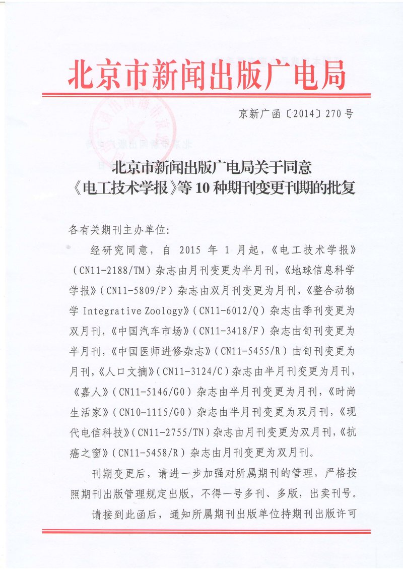 隨著《電工技術(shù)學(xué)報(bào)》在電氣工程領(lǐng)域知名度和影響力的不斷提升,稿源也越來越豐富,優(yōu)質(zhì)稿件投稿量快速增長,月刊出版方式已經(jīng)不能滿足越來越多的優(yōu)質(zhì)稿源在比較短的時(shí)間內(nèi)發(fā)表。為縮短出刊周期,《電工技術(shù)學(xué)報(bào)》從2015年起改為半月刊,每月5號,25號出版。