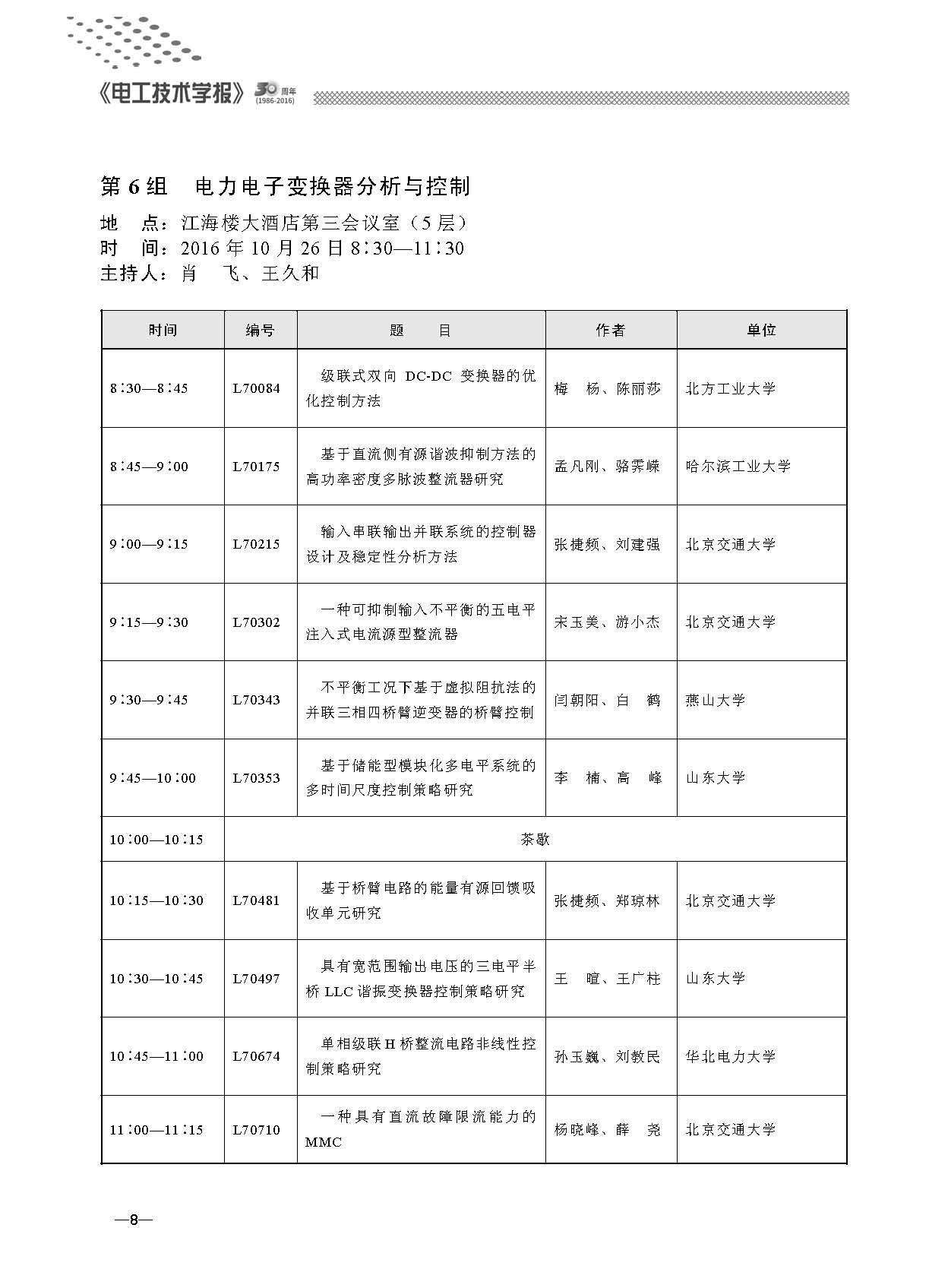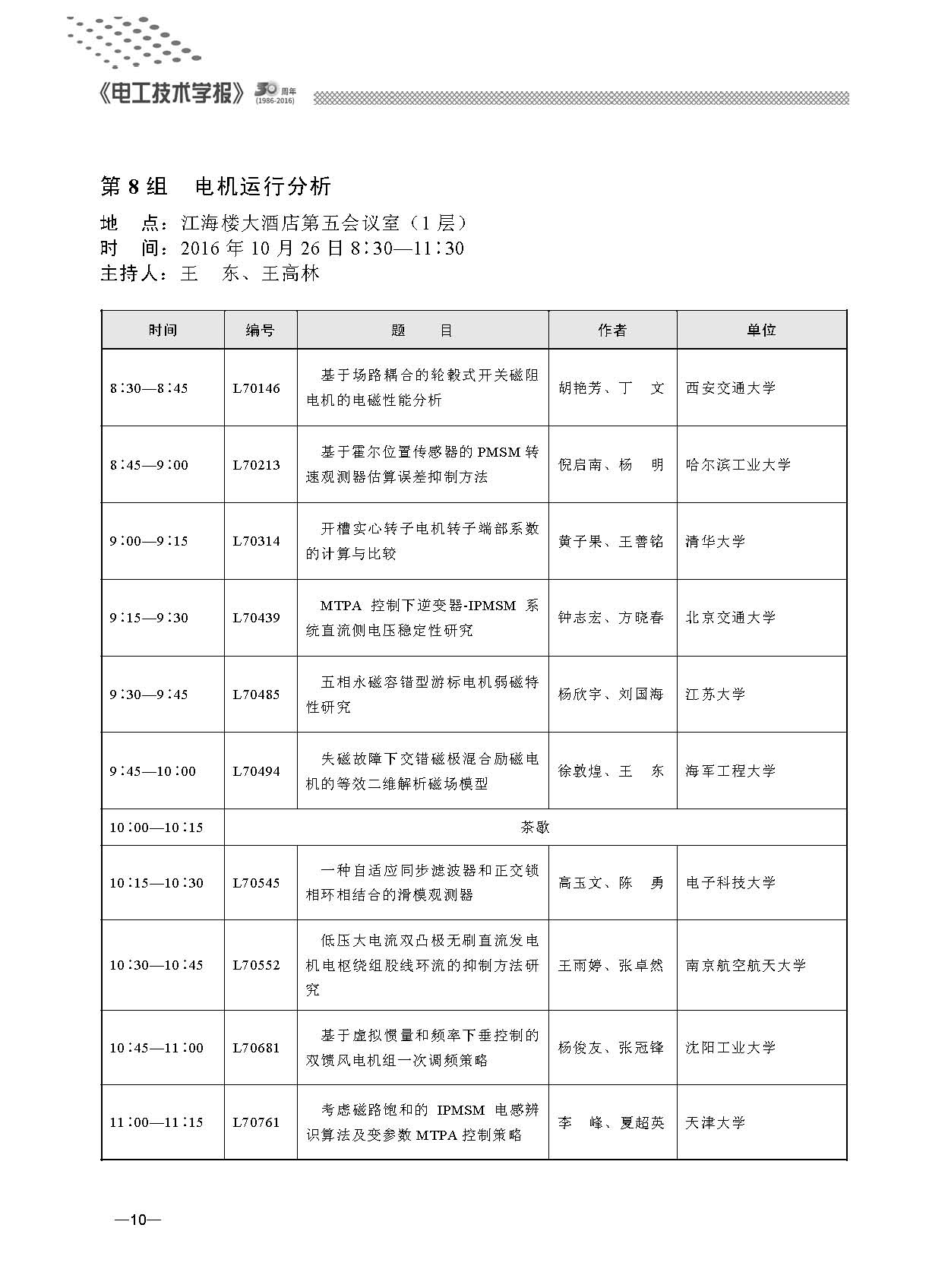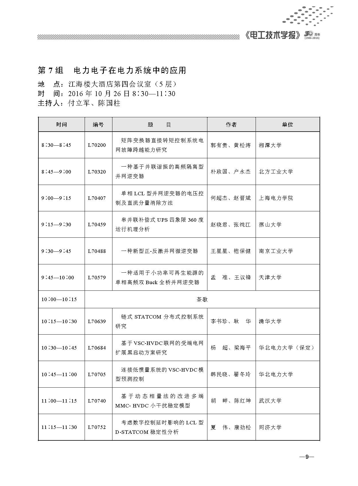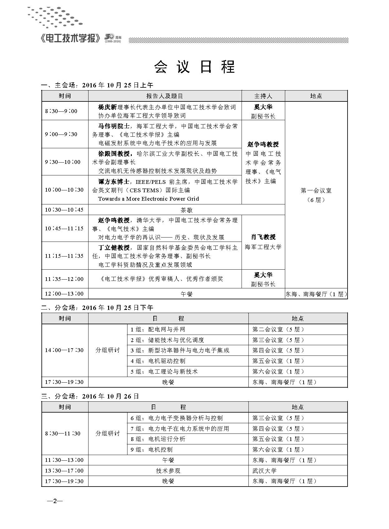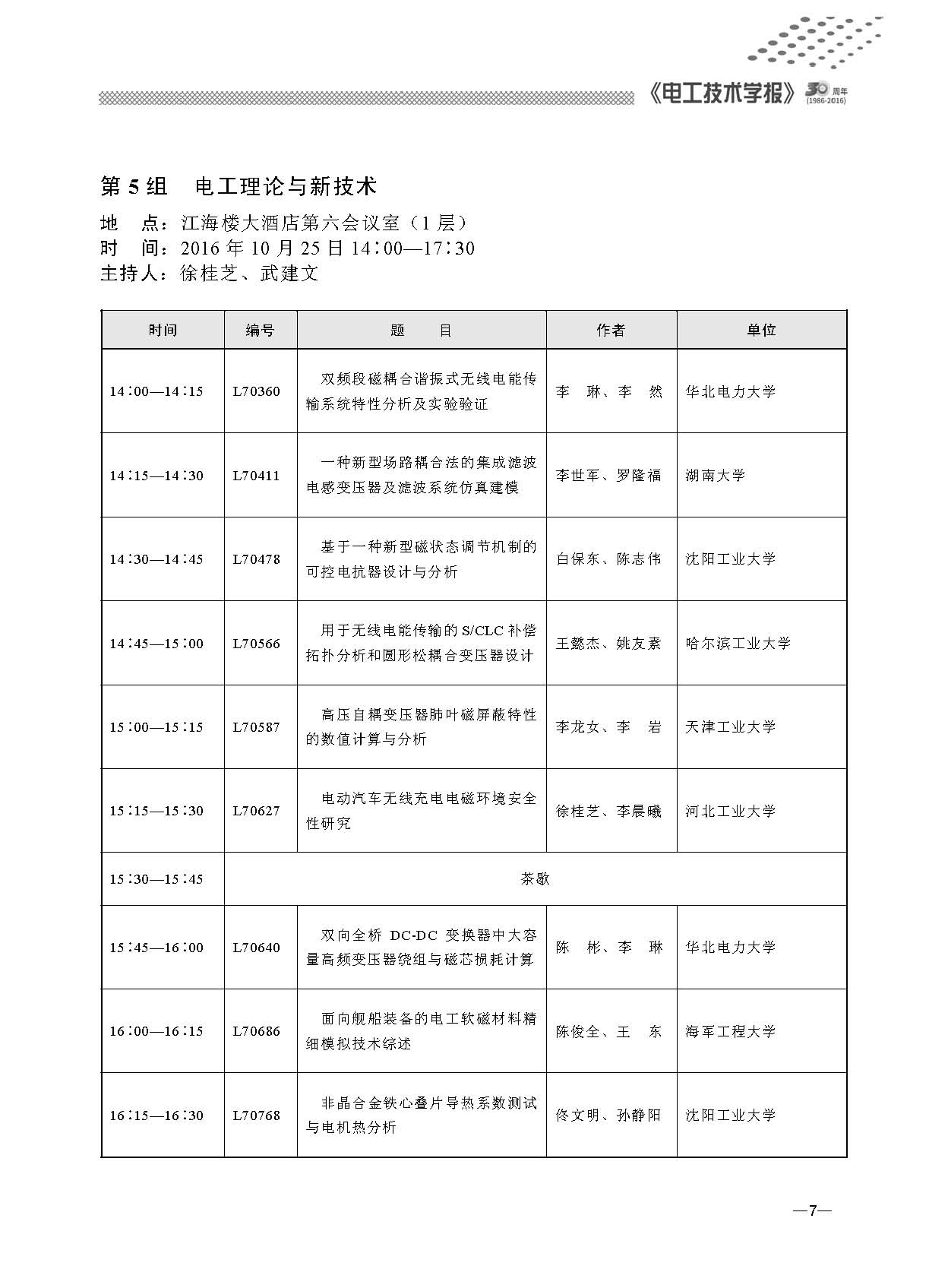 “第七屆電工技術前沿問題學術論壇”于2016年10月24~26日在武漢海軍工程大學召開。本次會議由學報編委和有關學科帶頭人組成組織委員會和學術委員會。會議通過大會報告、分會場報告等形式對電氣工程領域的新理論、新技術、新材料、新成果進行了深入交流與廣泛研討。