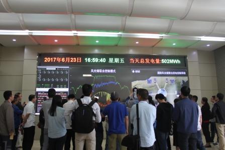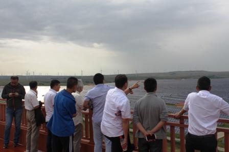 會后,大會組委會組織會議代表參觀了國家風光儲輸示范工程基地。國家風光儲輸示范工程是財政部、科技部、國家能源局及國家電網(wǎng)公司聯(lián)合推出的“金太陽示范工程”首個重點項目及國家科技支撐計劃重大項目。該工程采用世界首創(chuàng)的風光儲輸聯(lián)合發(fā)電技術路線,以“技術先進性、科技創(chuàng)新性、經(jīng)濟合理性、項目示范性”為主要特點,建設總規(guī)模為風電500MW、光伏100MW、儲能70MW。