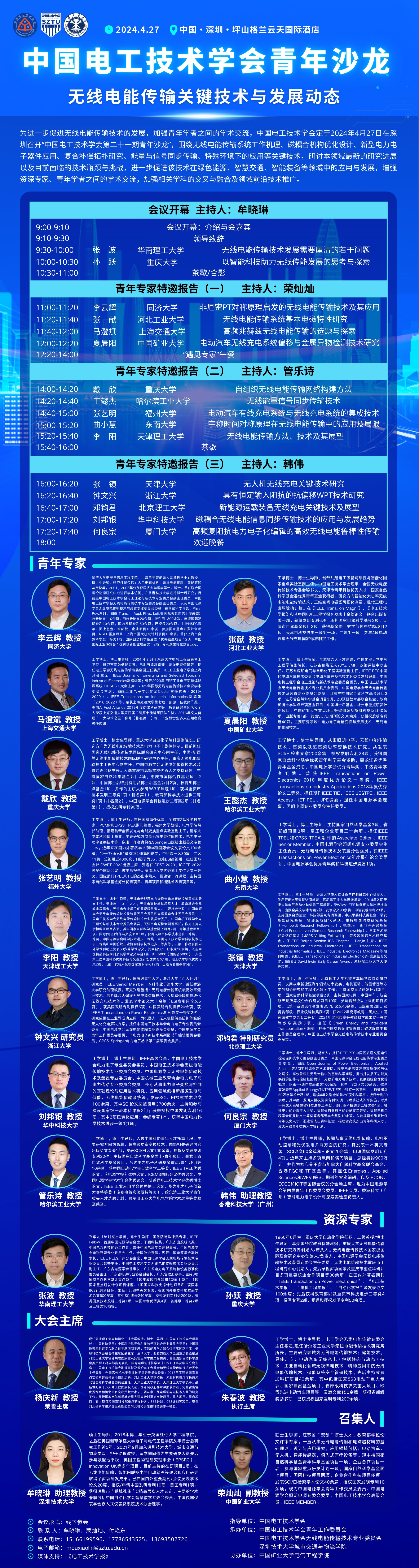 歡迎報(bào)名參會(huì)交流。本次沙龍活動(dòng)不收取注冊(cè)費(fèi),會(huì)議期間住宿、交通費(fèi)自理。報(bào)名人數(shù)控制在50人以內(nèi),中國電工技術(shù)學(xué)會(huì)會(huì)員優(yōu)先,報(bào)滿為止。請(qǐng)參會(huì)人員將附件中的報(bào)名表發(fā)送至:mouxiaolin@sztu.edu.cn。